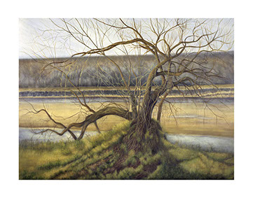 To the right, is it God or demon towering over with accusing fingers, (branches) pointing downward? And the river (life) for the rest of the world flows on. We are all judged everyday of